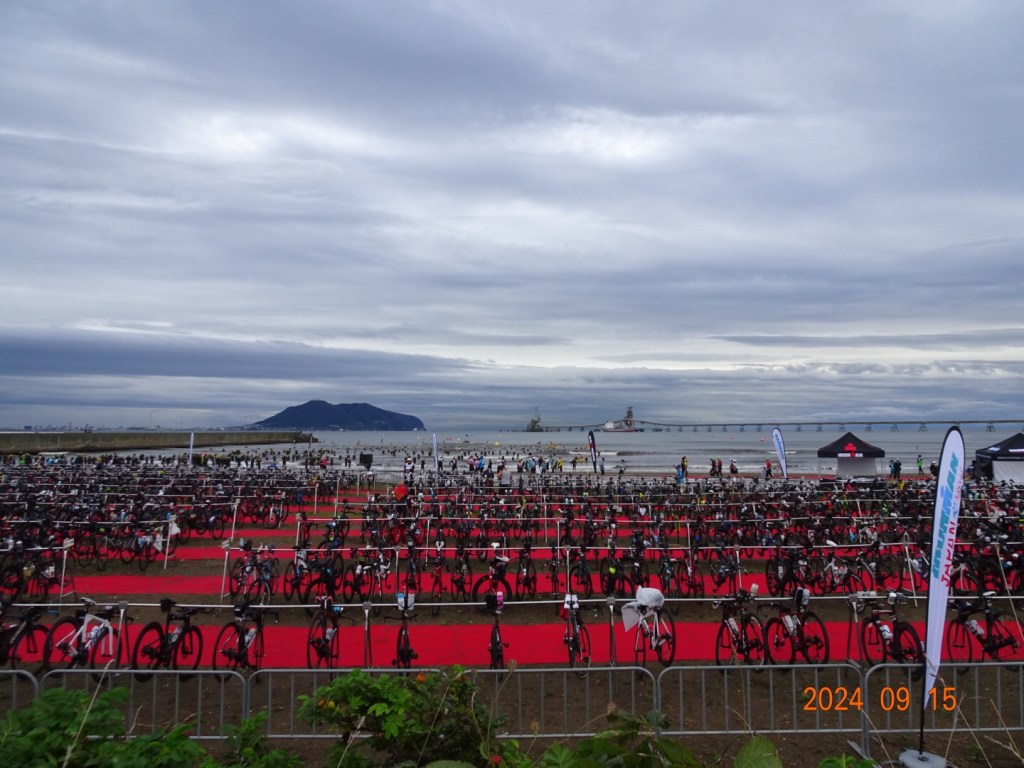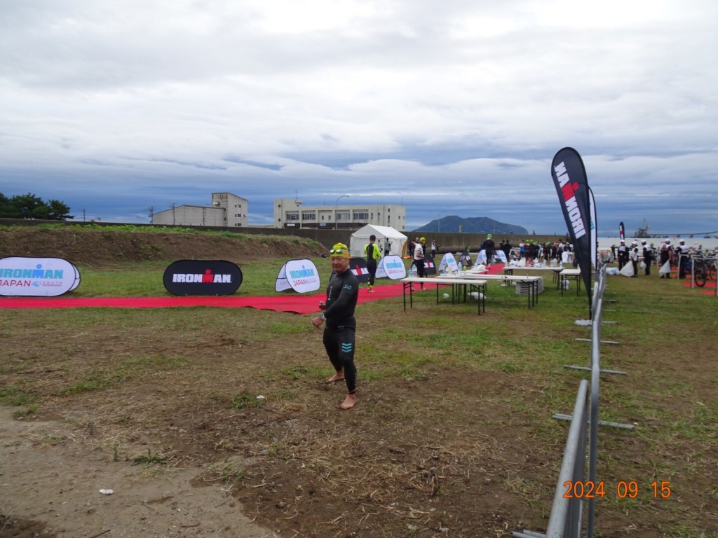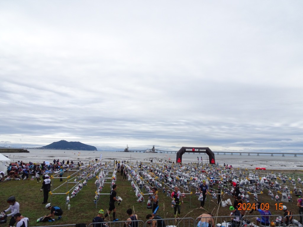 車から降り、ウェットスーツ、パーソナルニーズバッグ等を抱え路上に出る。すっかり夜が明け薄暗さが更に明るいグレーに変わる。会場へ向かう人たちの表情も、笑顔、真顔等が明るくなるにつれ、わかるようになってきた。