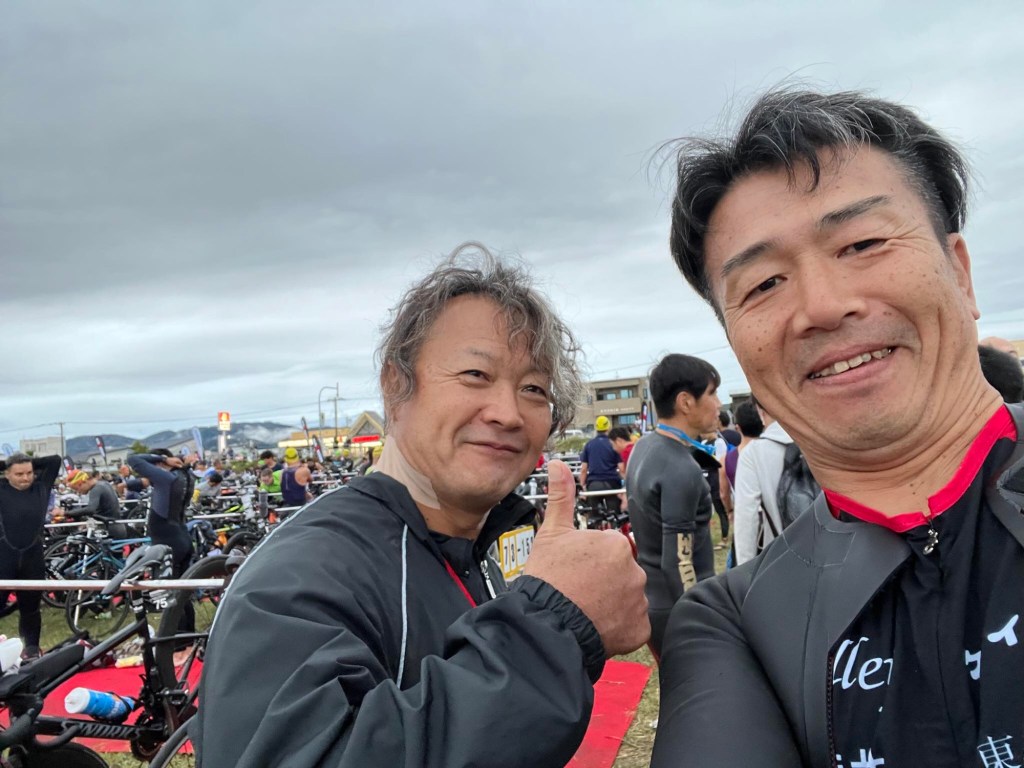 今回は、多くの仲間たちとレースを楽しんだ。SWIMで出遅れている分、タカさんこと服部タカトシさん、高田さんたちを何処で捕まえられるか楽しみだった。周回を重ねるが、なかなか捕まえ切ることができない。高速コースであったことから、簡単ではなかった。高田さんの姿を捉えられず、相当速いなと思っていたが、いつの間にかパスしていたようだった。ようやく、110km超えた辺りで、タカさんを発見!登りに差し掛かった後ろ姿から、相当な辛さを感じた上で「タカさん!やっと捕まえた!」と声を掛けると、「あ”~捕まったぁ~100km超えたら疲れて大変だぁ」と返ってきた。こんなやり取りが楽しい。結局、千葉県の齋藤さんは捉えられなかった。