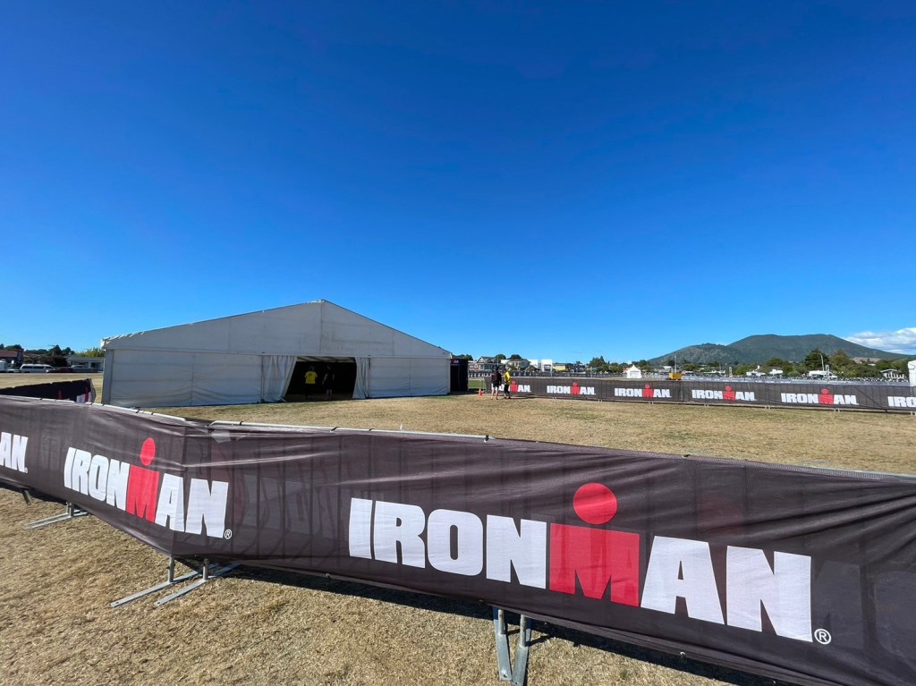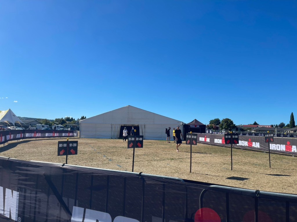 IMNZのフルディスタンスは午前8時がスタート時刻。70.3はその1時間前ですがそれでも7時。日本に置き換えますと、6時スタートの大会(佐渡A)もあり、正直とても大変です。選手もさることながら、応援の同行者も眠い目をこすりながら会場入りをします。ま、「ロングあるある」なのでやむを得ないのでしょうが、、、