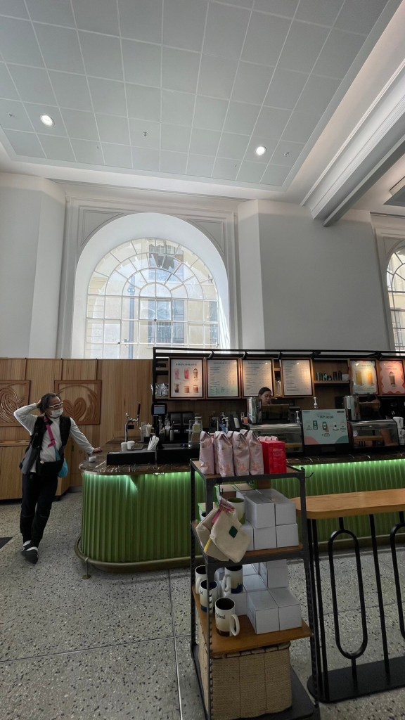 駅建物に、目敏くスタバを発見し、とうとうNZでも攻略することができた。昨年学んだのはNZのコーヒー事情は日本とは異なり、独特であったということ。つまり馴染のコーヒーになかなかありつけなかったのだ。どうもNZのコーヒーはイタリアの影響が大きく、エスプレッソマシンで抽出しているようで、日本の主流である抽出式ではないようであった。それが理由かどうかはふめいだが、TAUPOはもちろんのこと、オークランド国際空港にもスタバはなかった。ここ、港にはあるのだ。